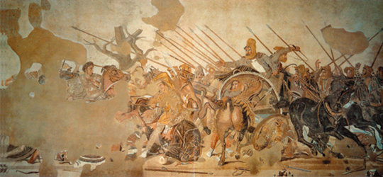 기원전 480~325년의 한정된 시기의 그리스 문명을 가리키는 고전(Classical) 양식은 문헌 기록에만 남아있다. 이 시대의 그리스 화가들은 환영적인 공간을 완숙하게 표했다고 기록되어 있는데, 이를 증명하는 벽화나 이외의 그림이 현재는 존재하지 않는다. 기원전 5세기 이후에는 거대한 벽면에 그림을 그리면서 새로운 회화 양식이 등장하였고 도자기화는 거대한 벽화를 베끼는 정도로 머물렀다. 이 시기의 그림은 복사품이나 모작을 통해서만 짐작할 수 있는데, 기원전 4세기 말엽에 에레트리아에서 활동했던 필록세누스(Philoxenus)라는 화가의 기록이 남겨져있다. 이 화가는 이수스 전쟁에서 알렉산드로스가 다리우스 군을 무찌르는 장면을 그렸다고 하는데 이 작품의 모작이 다음의 폼페이의 모자이크 벽화라고 추측된다.