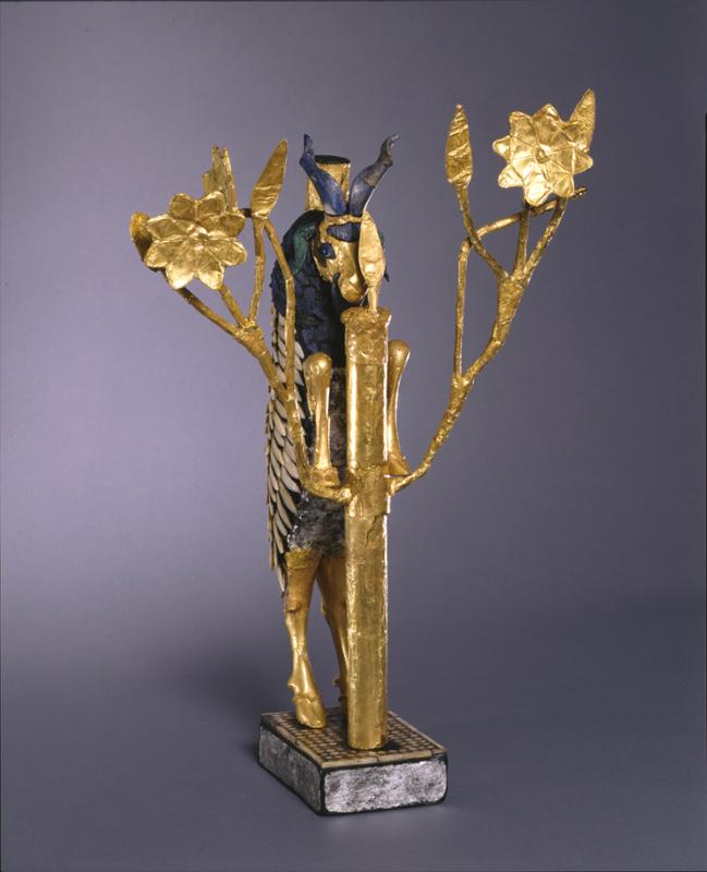 그중에서 대표적인 것으로는 한 마리의 숫양이 꽃이 핀 나뭇가지 사이에 서있는 모습을 묘사한 유물이 있다. 생동감을 느끼게 하는 숫양의 모습은 정면을 바라보고 있다. 수메르인에게 숫양은 탐무즈(Tammuz) 신을 상징하는 신성한 존재이다.